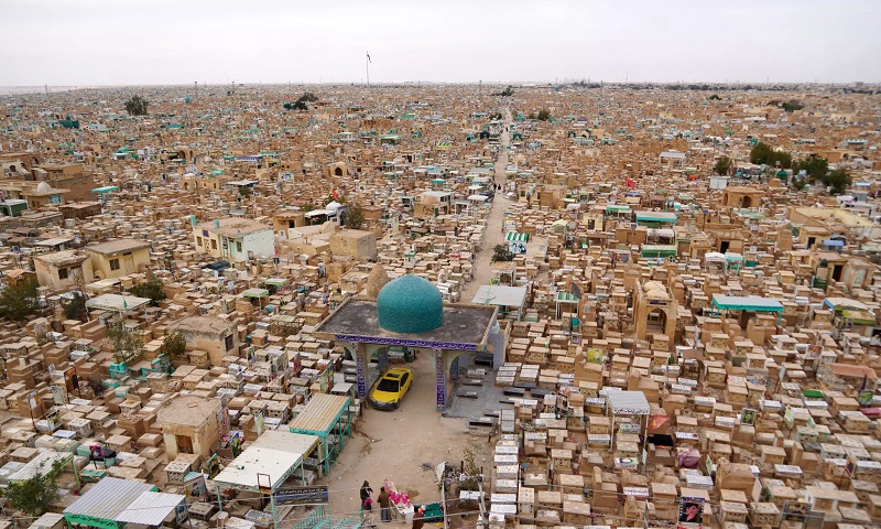 قبرستان وادیالسلام، بزرگترین گورستان جهان است که در ضلع شمالی حرم قرار دارد. بافت این منطقه شامل مقبرههای خانوادگی، اتاقکهای کوچک و سردابهای قدیمی است. مزار حضرت هود و حضرت صالح در ورودی قبرستان قرار دارد و دسترسی به آن آسان است.
