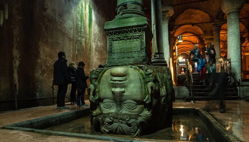 این مکان یک فضای بزرگ در زیر زمین است که در زمانهای قدیم آب شهر را در آن ذخیره میکردند تا مردم بیآب نمانند. فضای داخل آن کمی تاریک است و صدها ستون سنگی در آب قرار گرفتهاند که با نورپردازی و صدای آب، حالوهوای عجیب و جالبی درست کردهاند. دیدن این آب نبار خیلی طول نمیکشد و یکی از نکات جالبش دو ستون است که پایه آنها به شکل سر یک مجسمه افسانهای به نام «مدوسا» ساخته شده است.